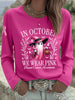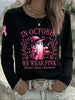 Women's In October We Wear Pink Halloween Pink Ghost Breast Cancer Awareness Support Long Sleeve T-Shirt