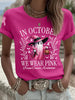 Women's In October We Wear Pink Halloween Pink Ghost Print Breast Cancer Awareness Support Tee