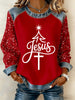 Women's Jesus Cross Christmas Tree Denim Patchwork Top