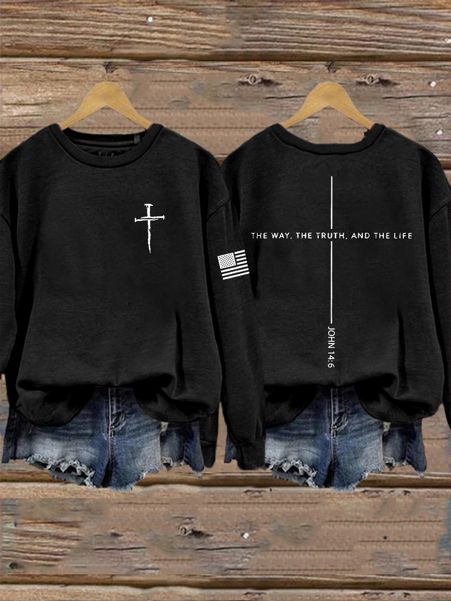 Women's Jesus The Way The Truth The Life John 14:6 Christian Cross Sweatshirt