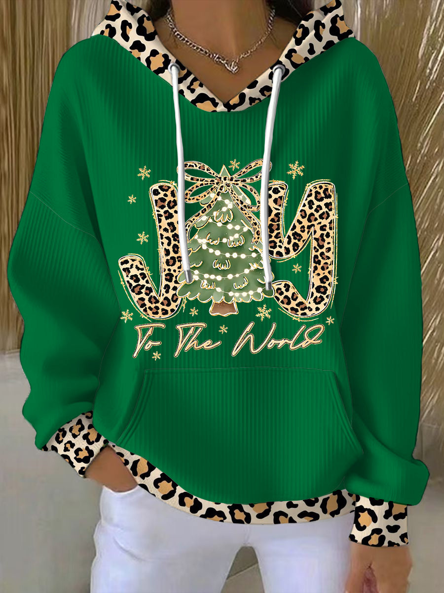 Women's Joy To The World Glitter Leopard Christmas Tree Hoodie