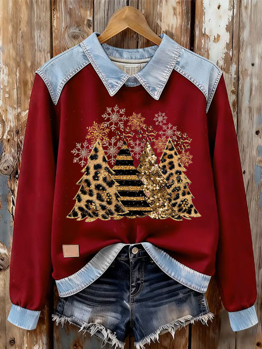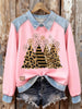 Women's Leopard Christmas Tree Printed Long Sleeve Shirt