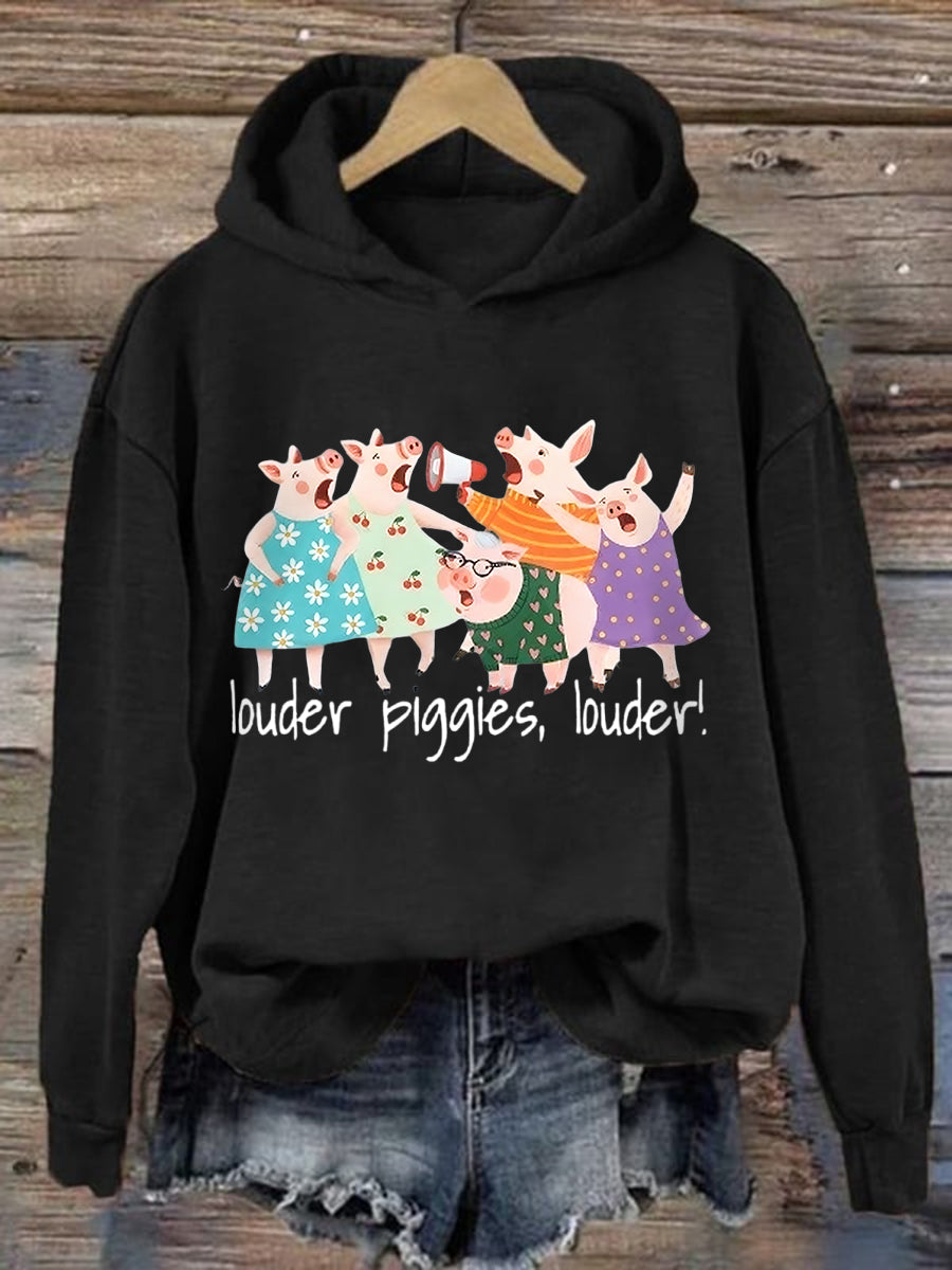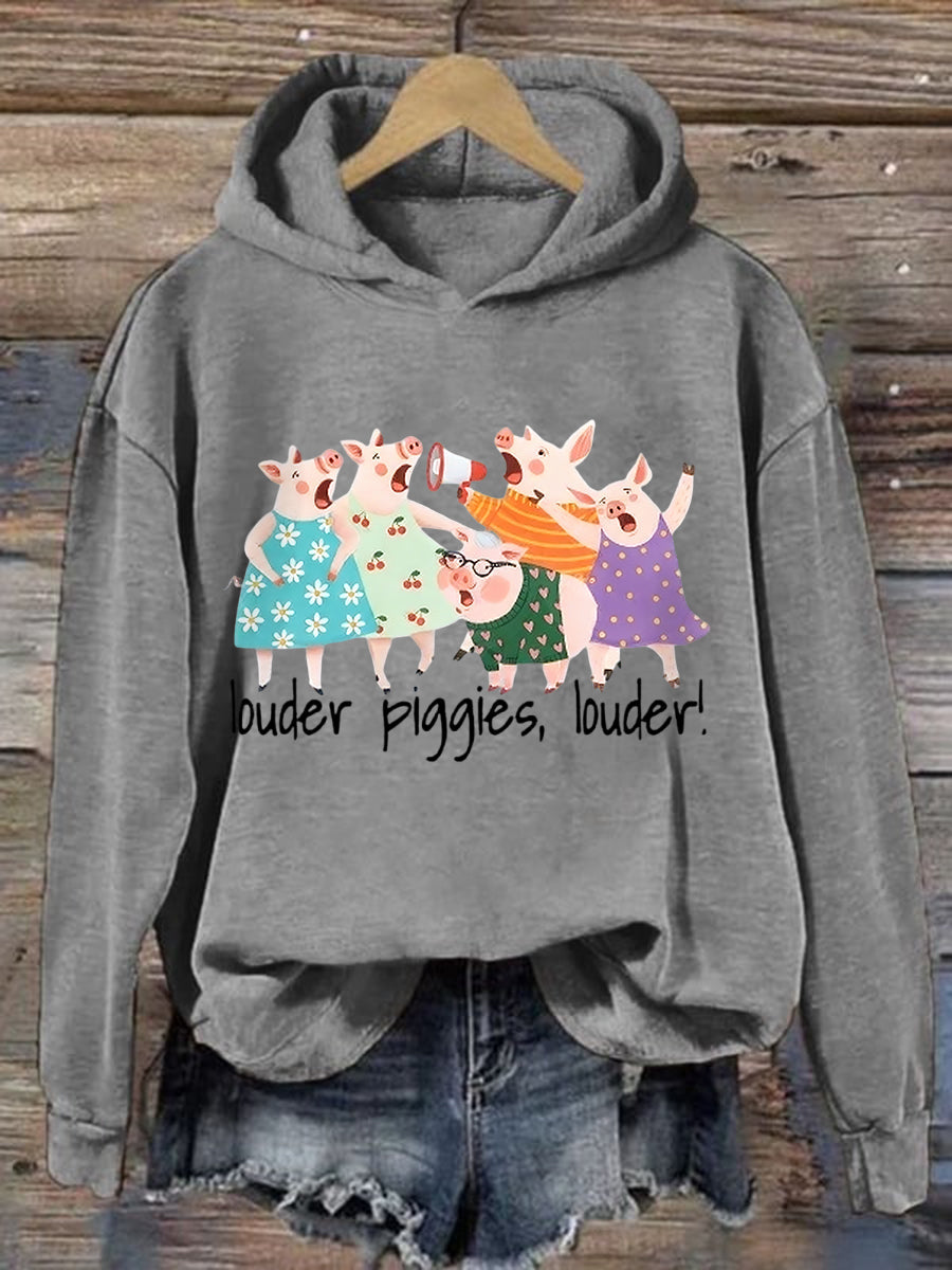 Women's Louder Piggies Resist Print Hoodie