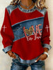 Women's Love Like Jesus Print Denim Patchwork Top