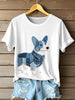 Women's Lovely Corgi Dog Denim Patchwork Pattern T-Shirt