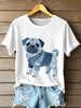 Women's Lovely Pug Dog Denim Patchwork Pattern T-Shirt