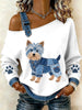Women's Lovely Yorkshire Terrier Pattern Denim Patchwork Top