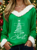Women's Merry Christmas Jesus Christmas Tree Cross Print Casual Fur-Collar Top