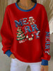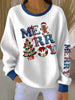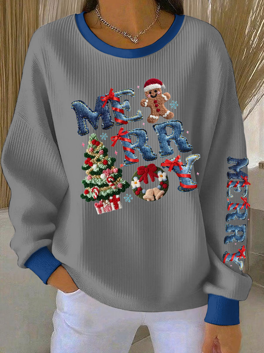 Women's Merry Christmas Print Ribbed Round-Neck Sweatshirt