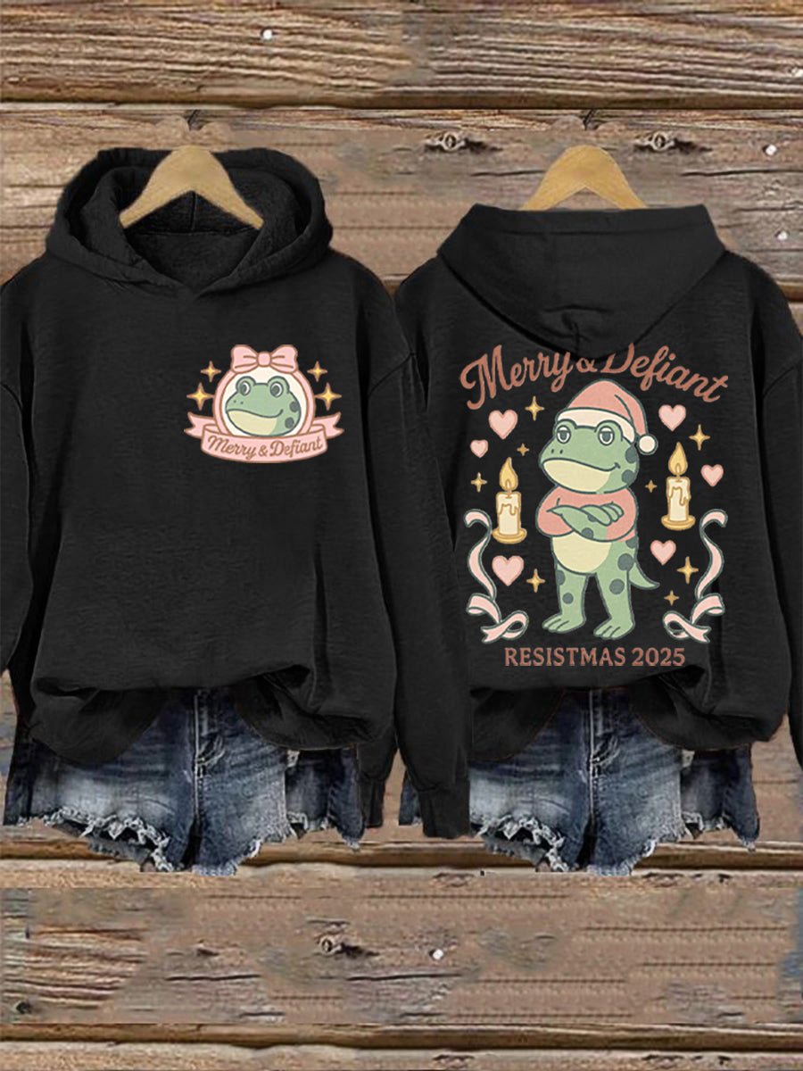 Women's Merry Resistmas Portland Frog Printed Hoodie