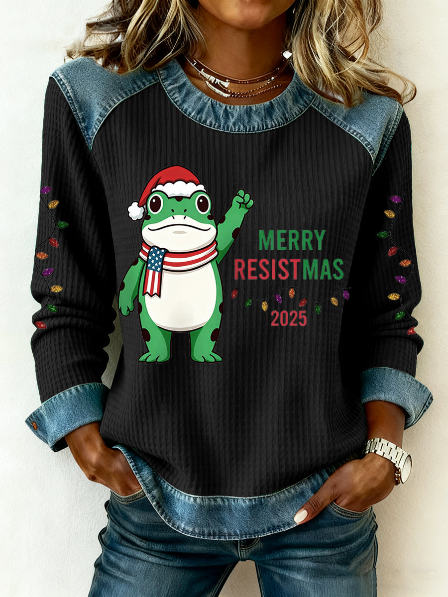 Women's Merry Resistmas Portland Frog Printed Sweatshirt