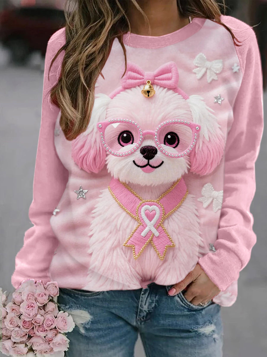 Women's Pink Dog Pink Ribbon Breast Cancer Awareness Sweatshirt