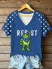 Women's Portland Frog Resist V-neck Off-shoulder Short-sleeved T-shirt