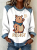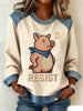 Women's Quiet Piggy, This Piggy Won't Be Quiet Resist Denim Patchwork Top