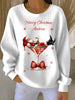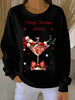 Women's Santa Claus and wine glass Print Ribbed Round-Neck Sweatshirt