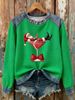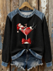 Women's Santa Claus sitting on a wine glass Print waffle Sweatshirt