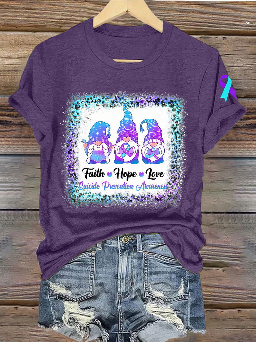 Women's Suicide Prevention Awareness Faith Hope Love Gnomes T-shirt