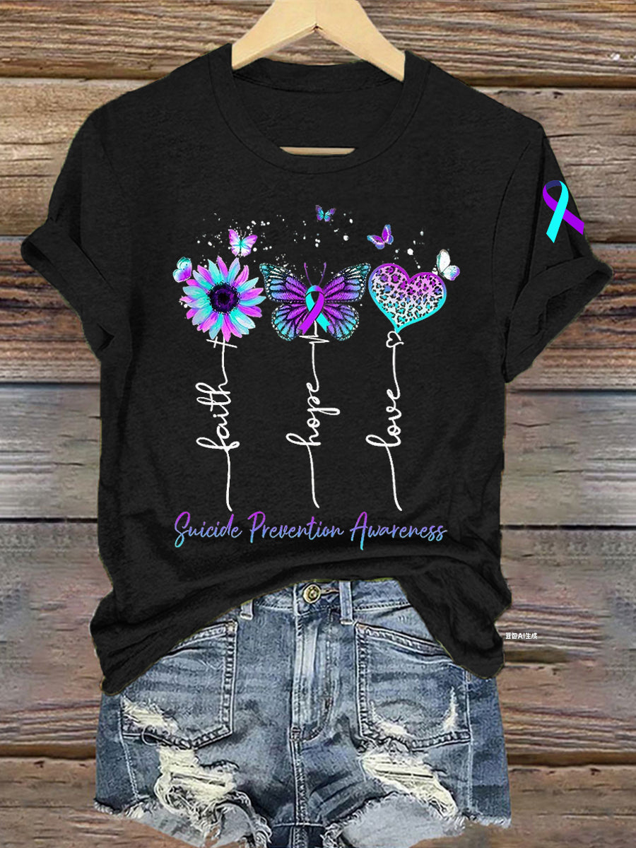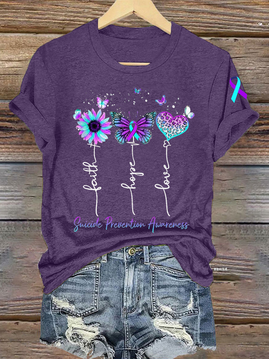 Women's Suicide Prevention Awareness Faith Hope Love Teal & Purple Ribbon T-Shirt