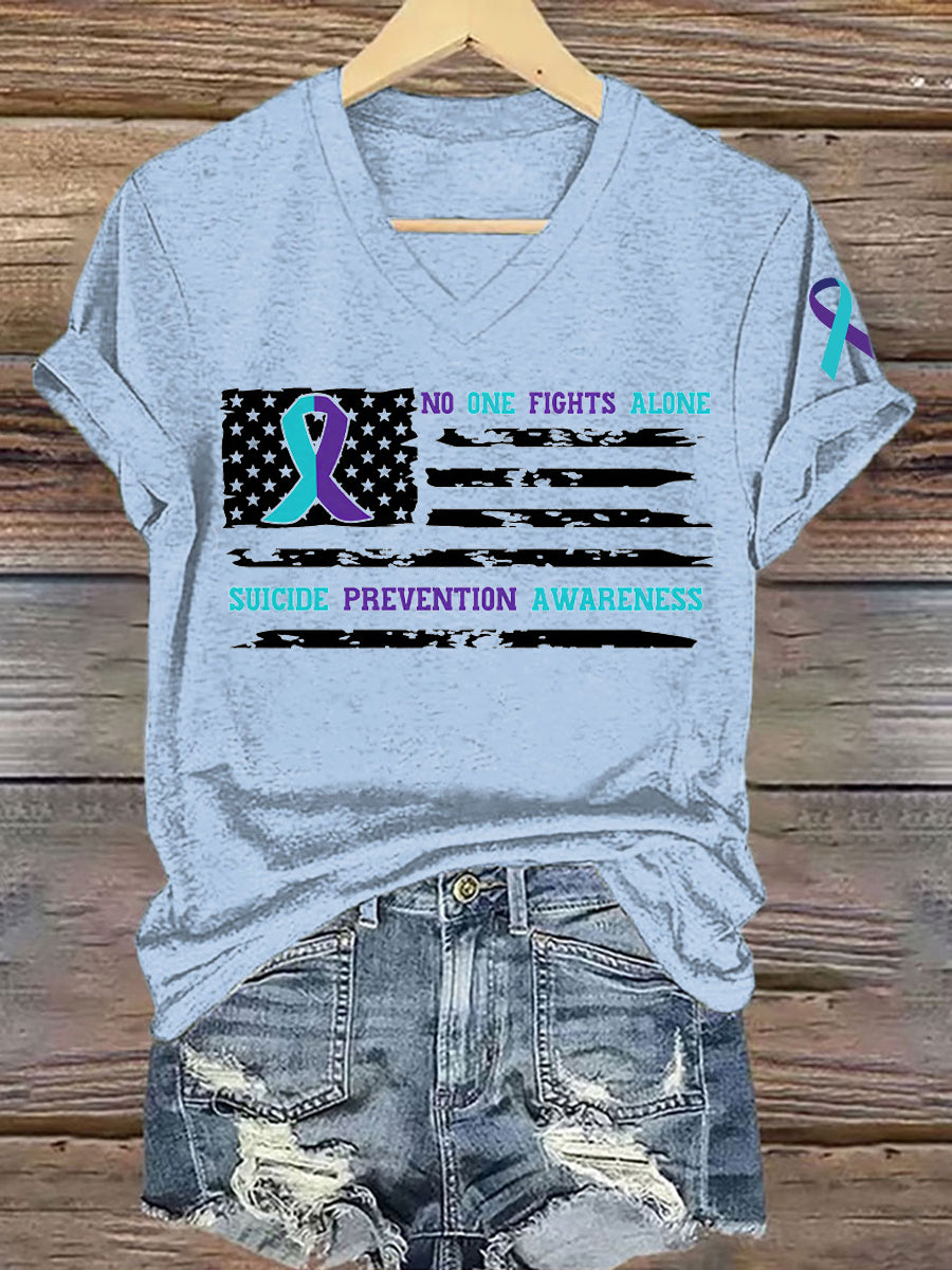 Women's Suicide Prevention Awareness Flag Ribbon Print T-Shirt