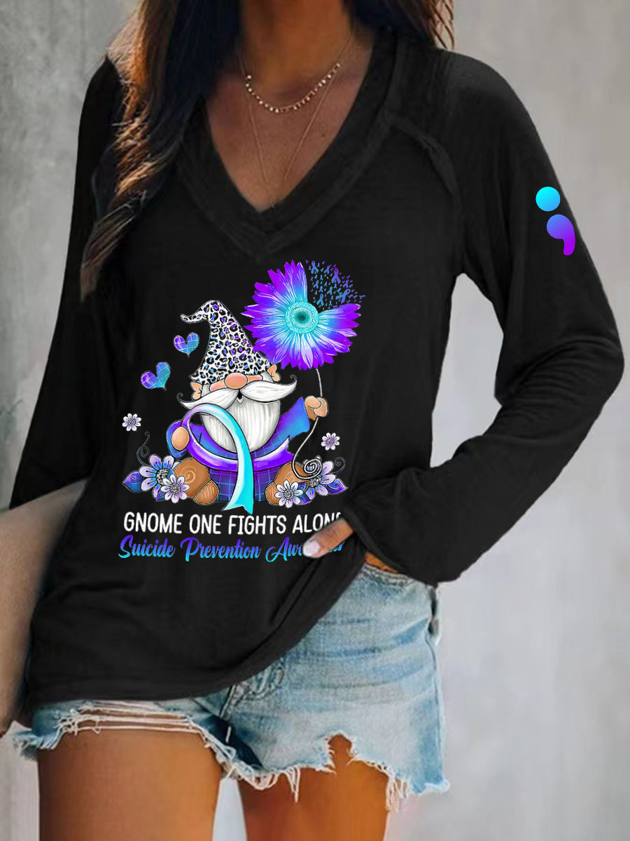 Women's Suicide Prevention Awareness Gnomes V Neck Tee