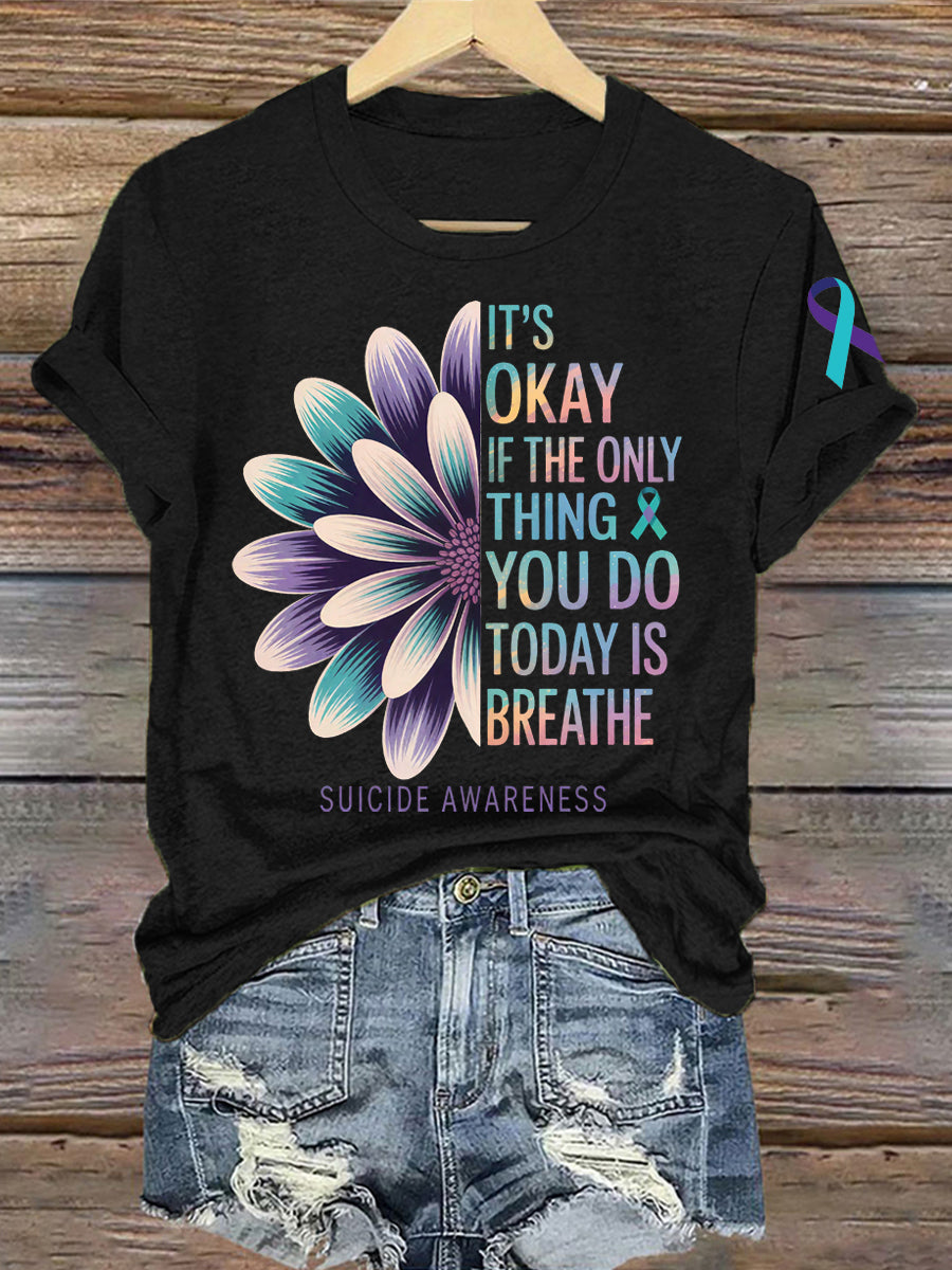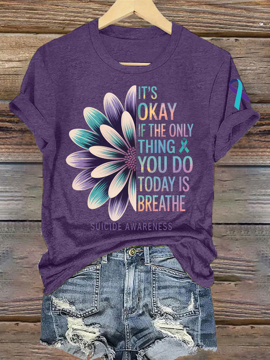 Women's Suicide Prevention Awareness It's Okay If The Only Thing You Do Today Is Breathe Print T-Shirt