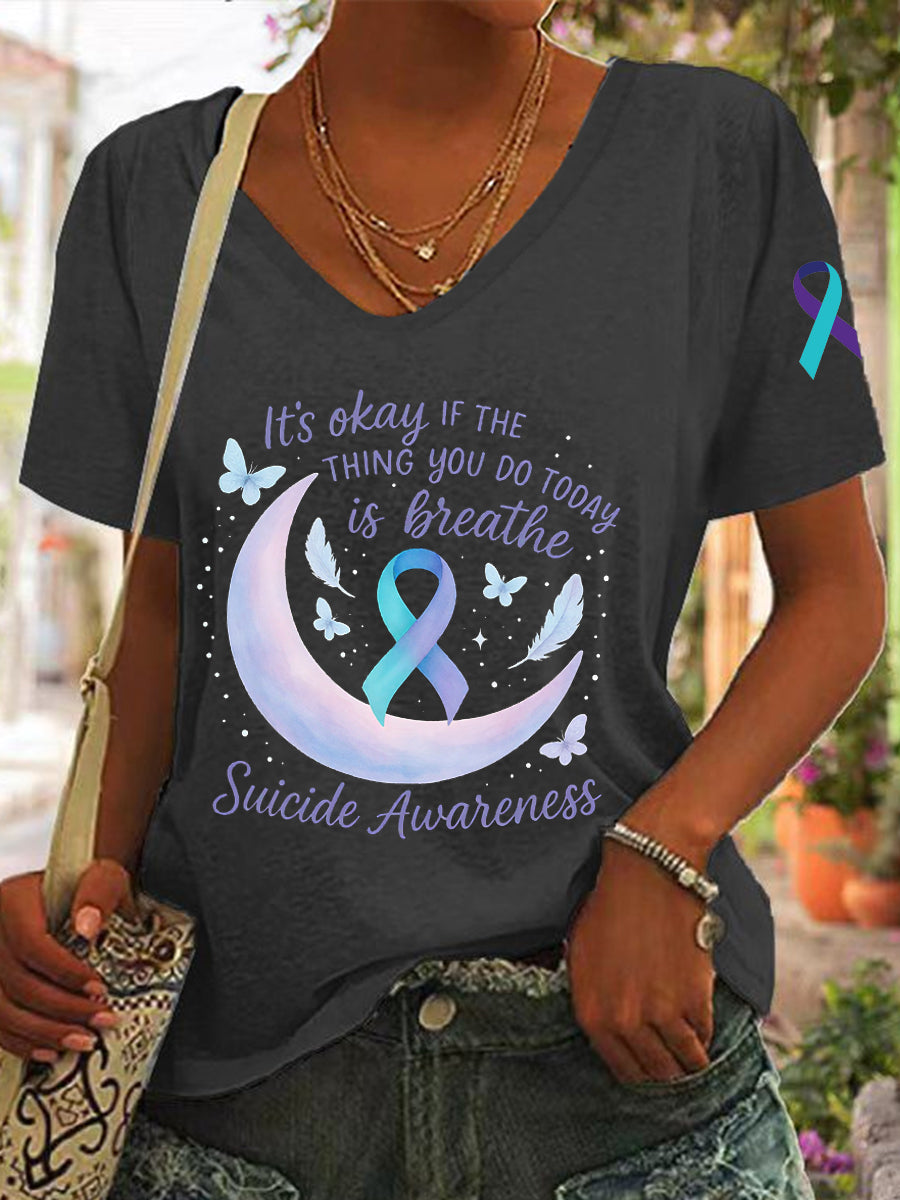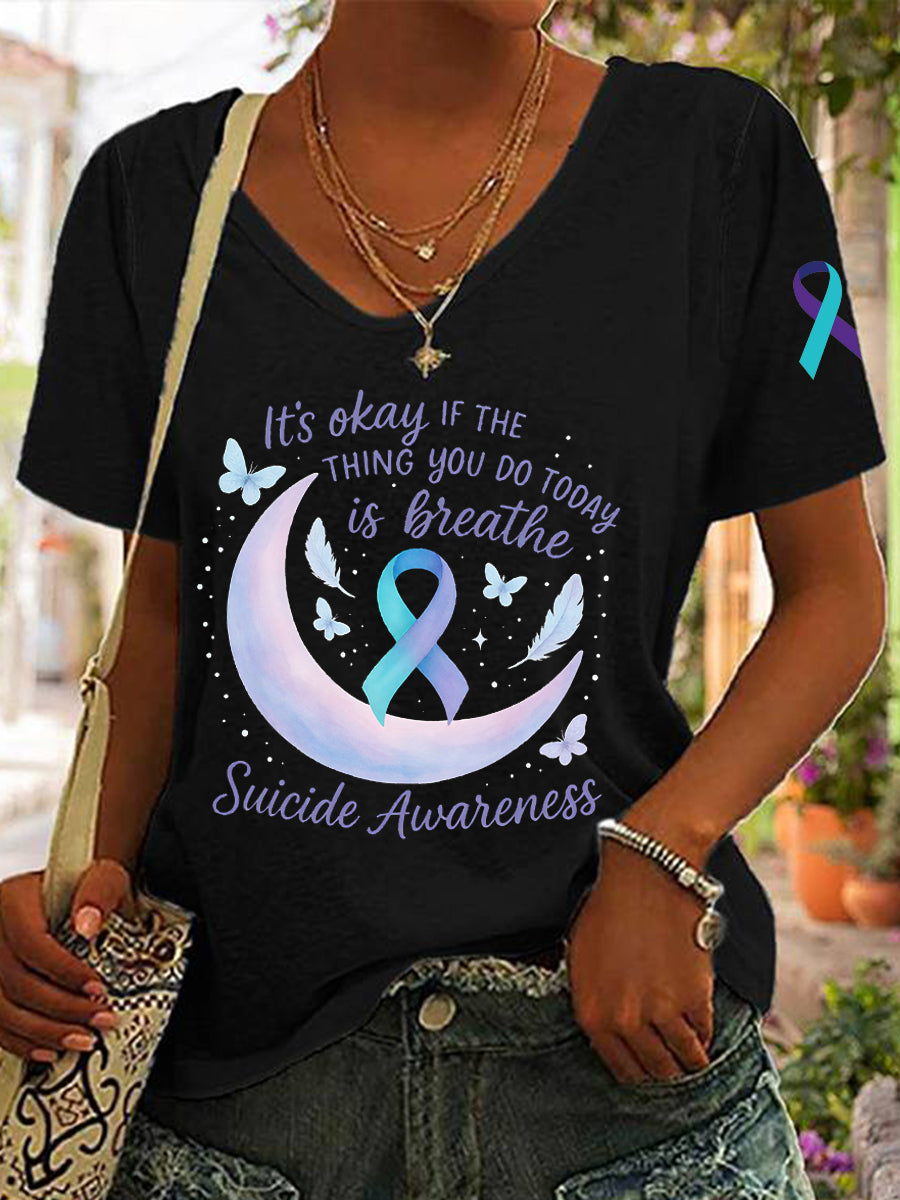 Women's Suicide Prevention Awareness It's Okay If The Only Thing You DO Today Is Breathe Print T-Shirt