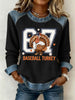 Women's Thanksgiving Baseball Turkey Denim Patchwork Waffle Top