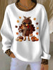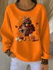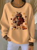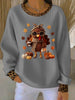 Women's Thanksgiving Print Ribbed Round-Neck Sweatshirt