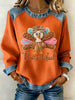 Women's Thanksgiving Turkey Printed Denim Patchwork Waffle Top
