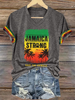 Women's V-Neck Retro Jamaica Strong Save The Animals Reggae Red, Green, And Gold Print T-Shirt