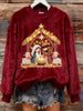 Women's Winter Flannel Nativity Print Crew Neck Top